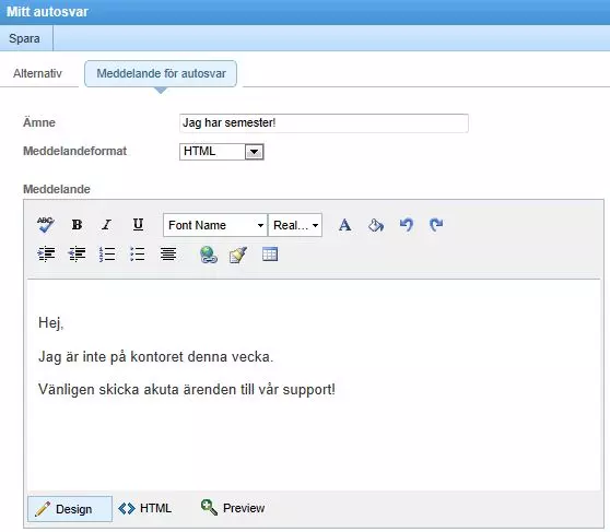 Om du behöver skapa ett tillfälligt eller permanent autosvar eller frånvaromeddelande, så kan du göra det via webmailen.